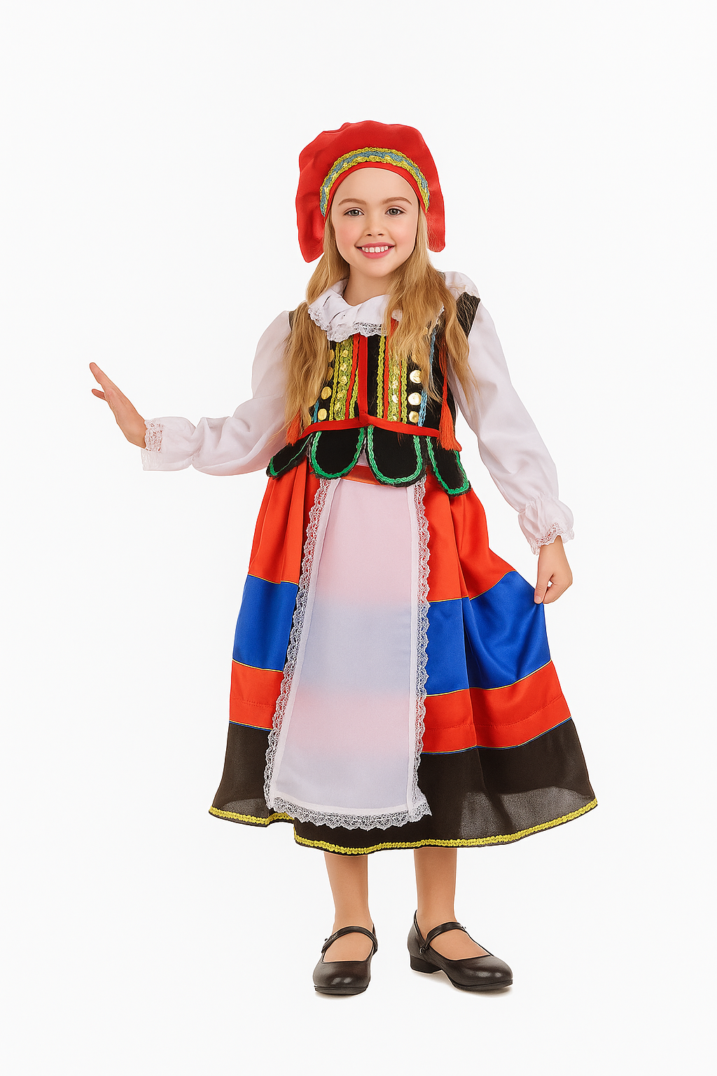 Gömlek, yelek, etek ve başlık kostüm seti.